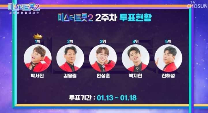 온라인 응원투표 미스터트롯2 순위