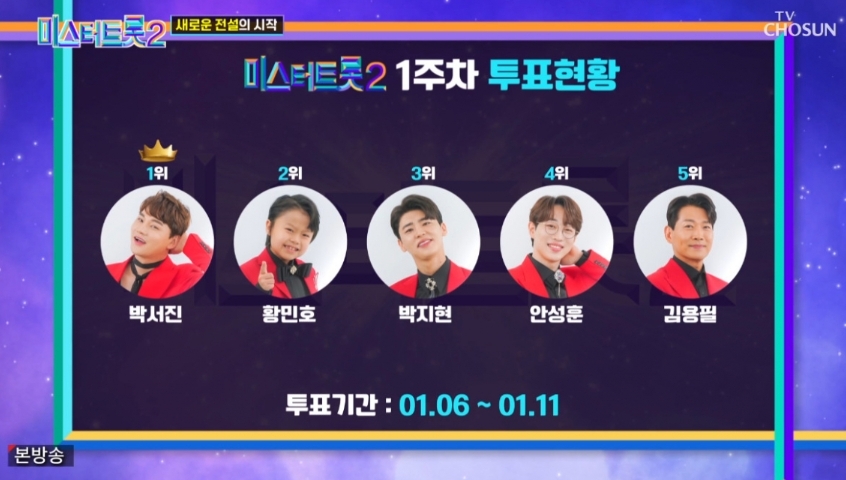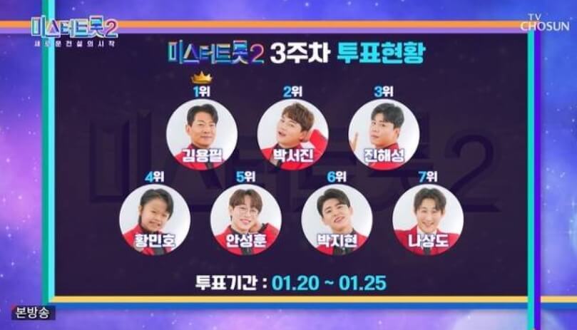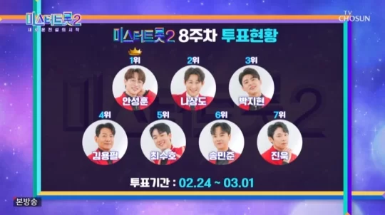 10위 박성온, 9위 송도현, 8위 안성훈, 7위 진해성, 6위 진욱, 5위 송민준, 4위 박지현, 3위 최수호, 2위 추혁진, 1위 나상도 순으로 TOP10에 오르게 됐다.