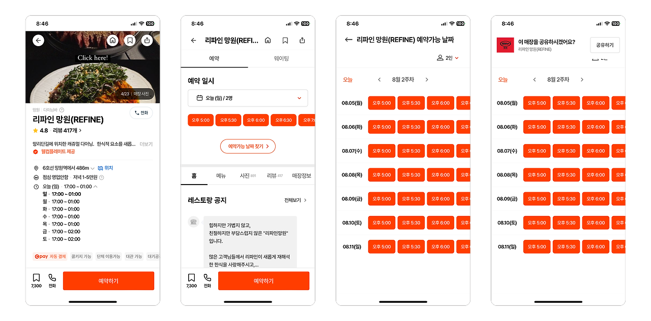다양한 식당 정보를 한눈에 볼 수 있고, 실시간으로 예약 상황을 확인할 수 있습니다.
