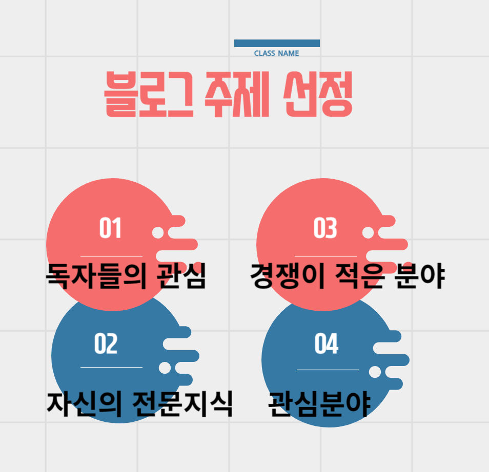 블로그의 주제는 독자들의 관심을 끌 수 있어야 합니다.