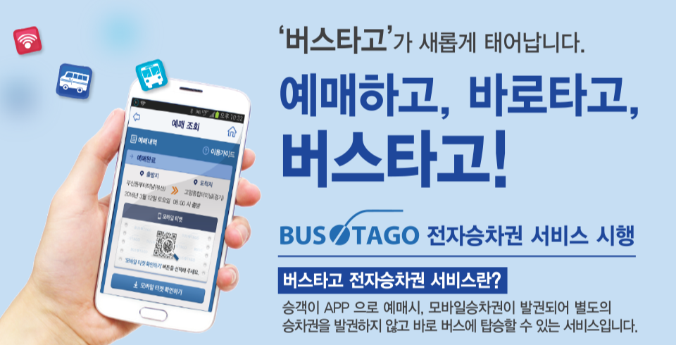 별도의 승차권없이 어플의 모바일 승차권을 태그하여 바로 버스에 승차할 수 있습니다.
