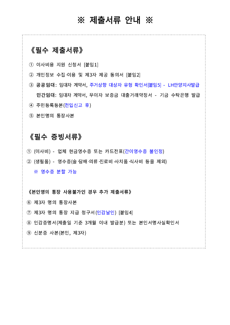 이주비도 40만원 한도 내에서 실비 지원 받을수 있다.