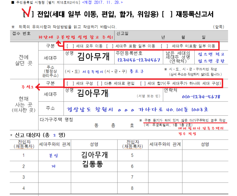 전입신고서 작성요령