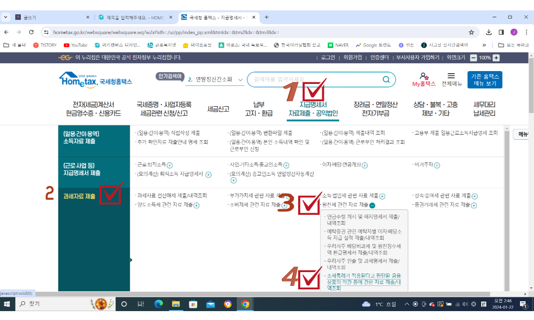 홈택스에 로그인하여