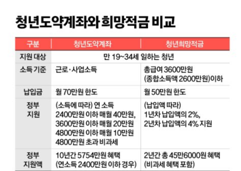 최근 청년 도약 계좌와 청년 희망 적금 비교해 보셔서 좋은 적금혜택을 받아보세요.
