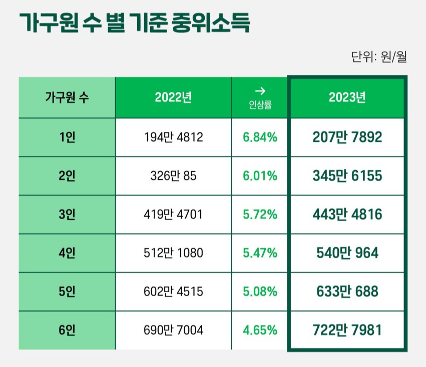 2023년도 기준 중위소득은 어떨지 아래표로 확인해 보겠다.