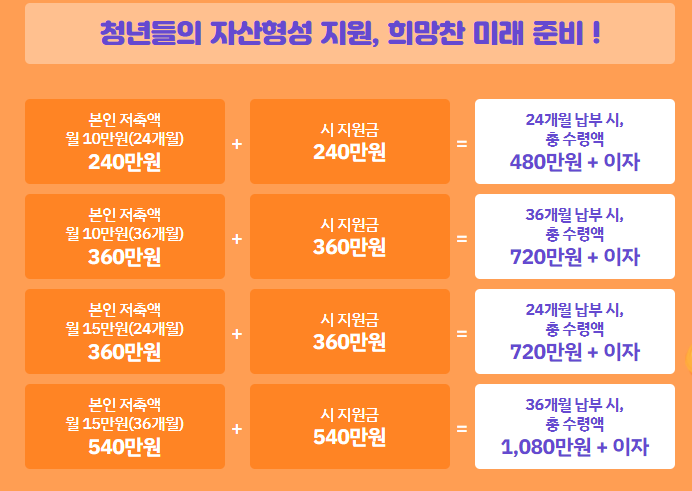 시가 저축액의 50%~100%를 적립해 줍니다.