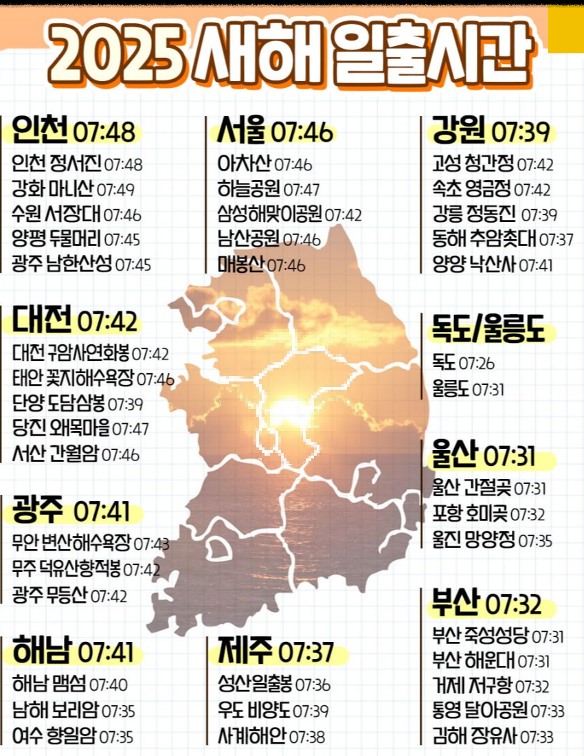 2025년 전국의 새해 일출시간을 총정리해 소개합니다.