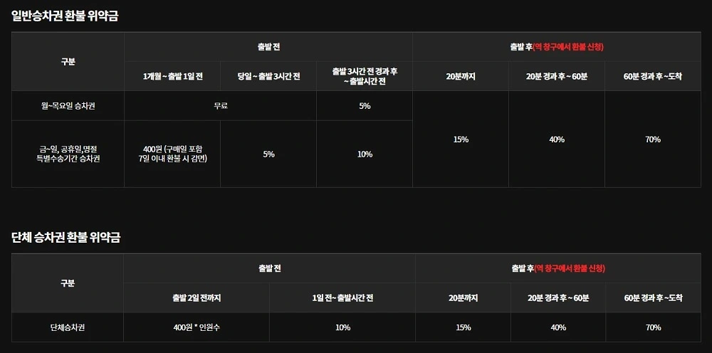 일반 티켓은 출발 1일 전까지 취소 시 전액 환불이 가능하며, 출발 당일 취소 시 일부 환불이 이루어집니다.
