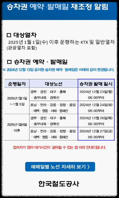 이번 포스팅에서는 2025년 설날 KTX 시간표와 예매 방법, 할인 정보, 취소 및 환불 정책 등 다양한 정보를 제공하겠습니다. 🚄✨