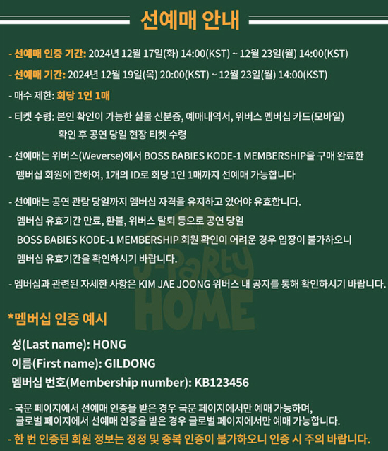 선예매는 2024년 12월 17일부터 23일까지 가능하며, 일반 예매는 12월 23일 오후 8시부터 시작됩니다.